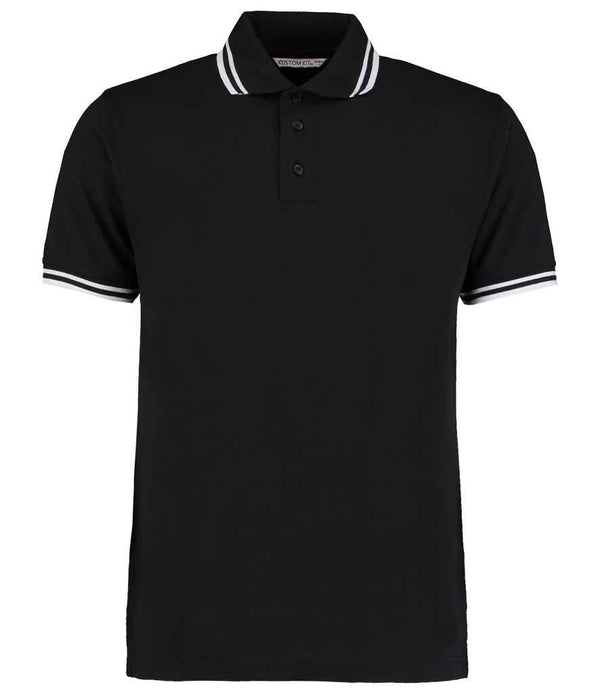 Kustom Kit Contrast Tipped Poly/Cotton Piqué Polo Shirt | Black/White.