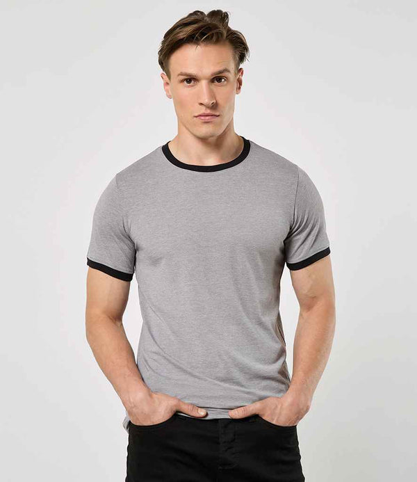 Kustom Kit Fashion Fit Ringer T-Shirt | Light Grey Marl/Black.
