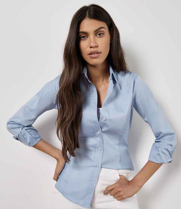 Kustom Kit Ladies Premium Long Sleeve Tailored Oxford Shirt | Light Blue.
