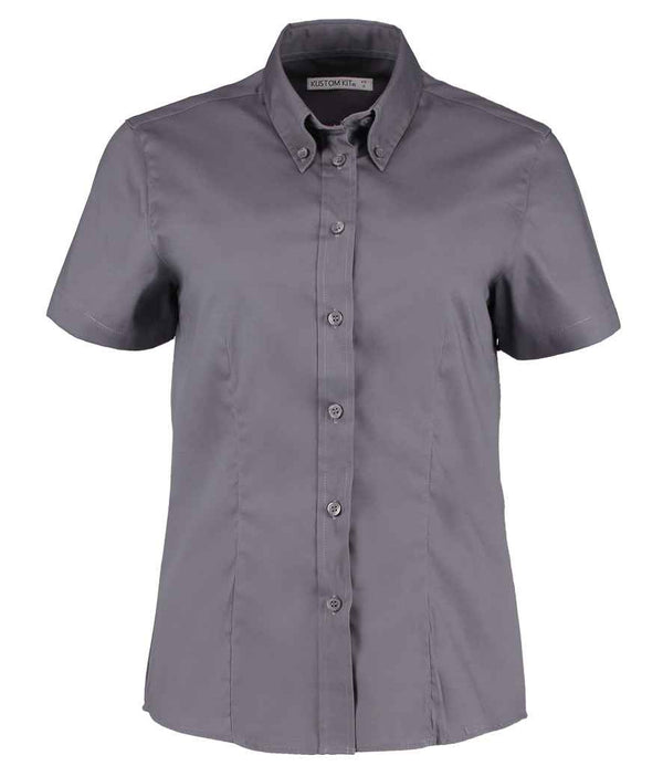 Kustom Kit Ladies Premium Short Sleeve Tailored Oxford Shirt | Charcoal.