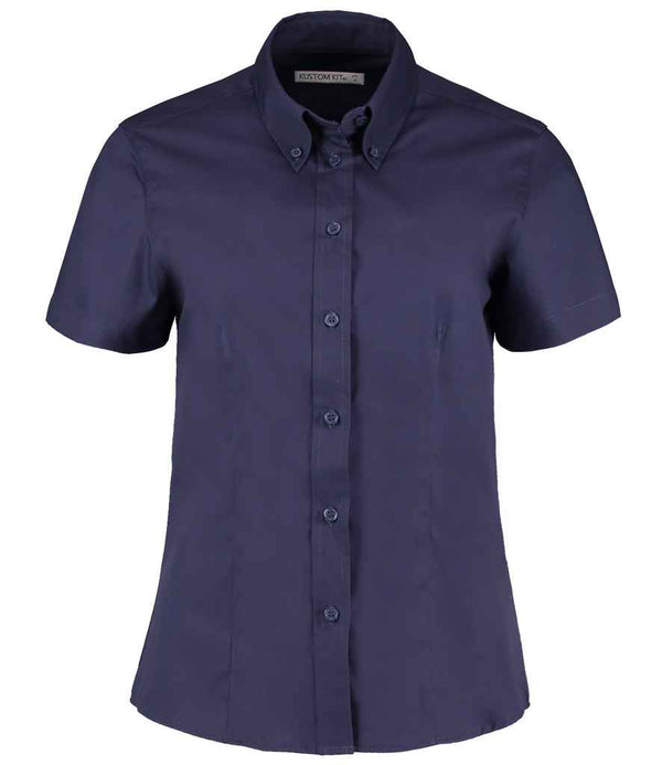 Kustom Kit Ladies Premium Short Sleeve Tailored Oxford Shirt | Midnight Navy.