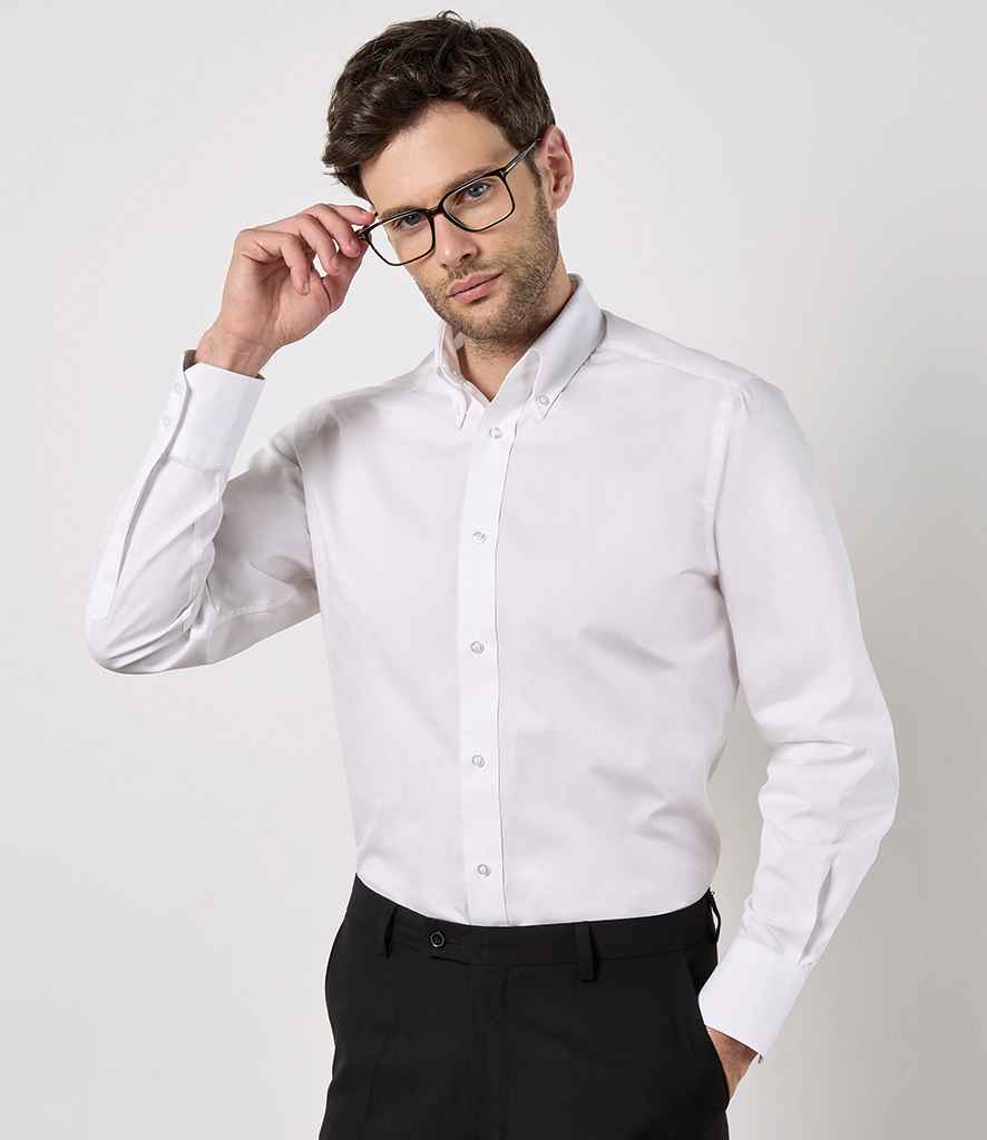 Kustom Kit Long Sleeve Tailored City Business Shirt | White.