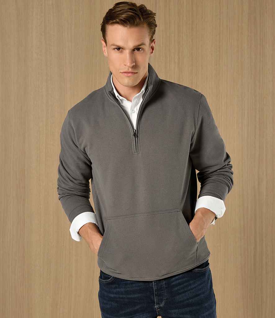 Kustom Kit Regular Fit 1/4 Zip Piqué Sweatshirt | Dark Grey.
