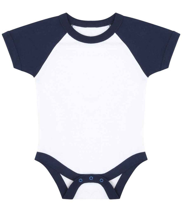 Larkwood Essential Short Sleeve Baby Baseball Bodysuit | White/Navy.