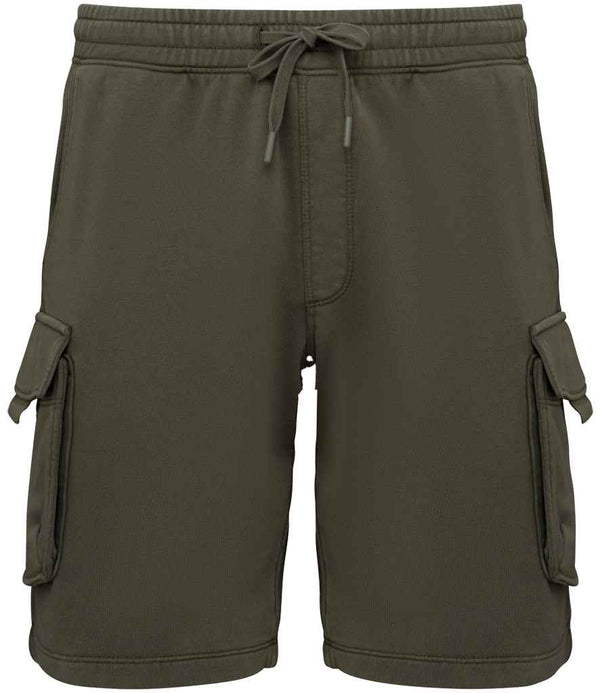 Native Spirit French Terry Washed Effect Cargo Shorts | Washed Organic Khaki.