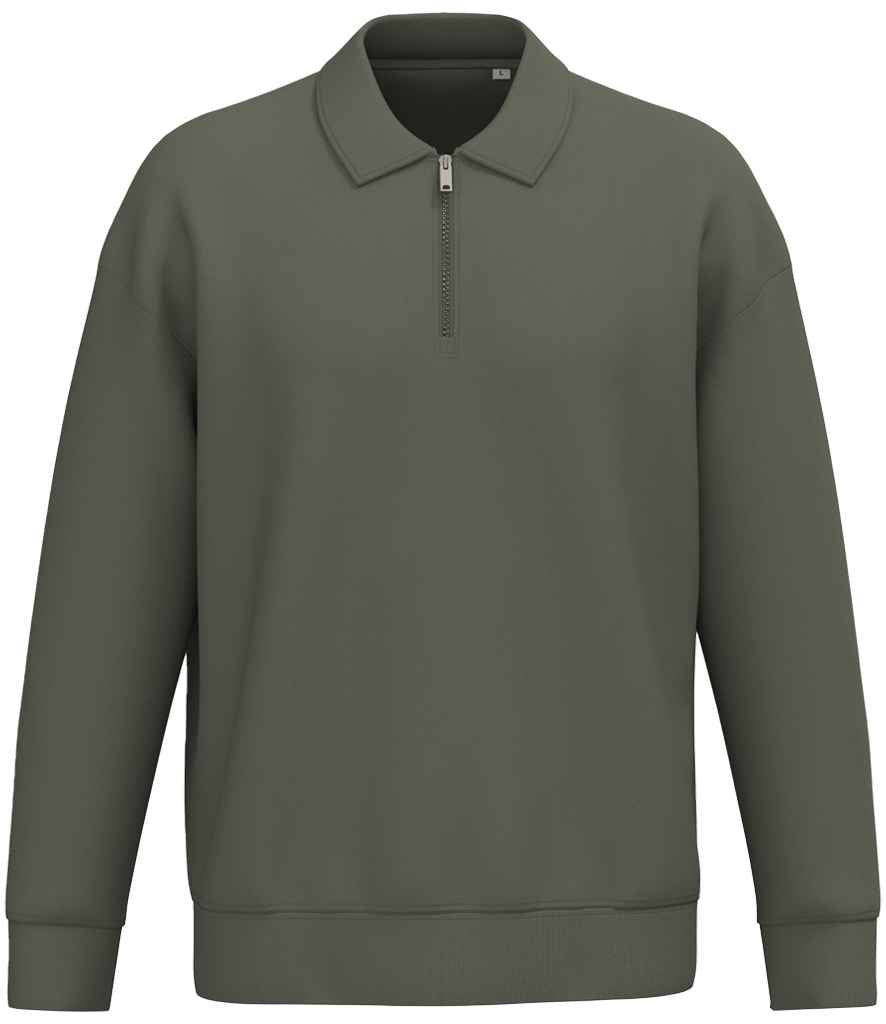 Native Spirit Unisex 1/4 Zip Sweatshirt with Polo Collar | Organic Khaki.