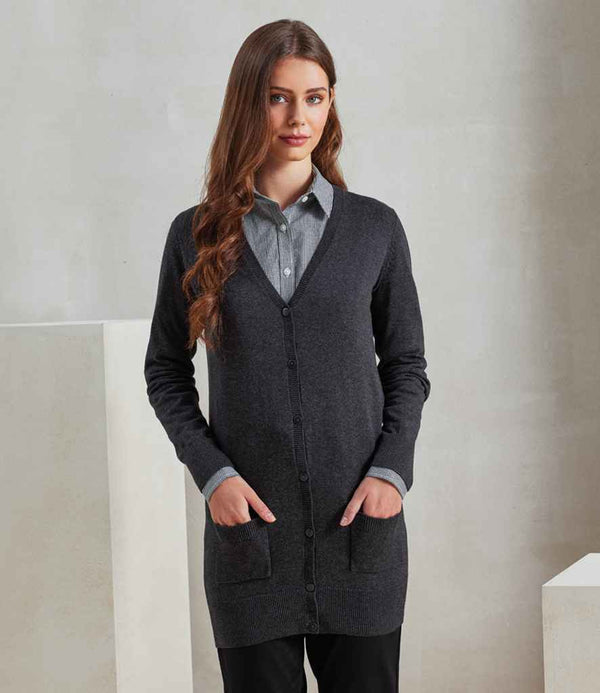 Premier Ladies Longline V Neck Cardigan | Charcoal.