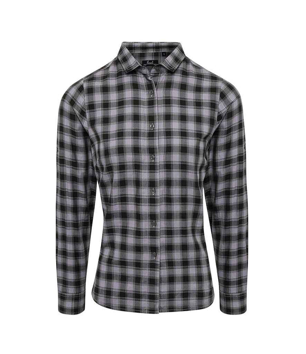 Premier Ladies Mulligan Check Long Sleeve Shirt | Steel/Black.