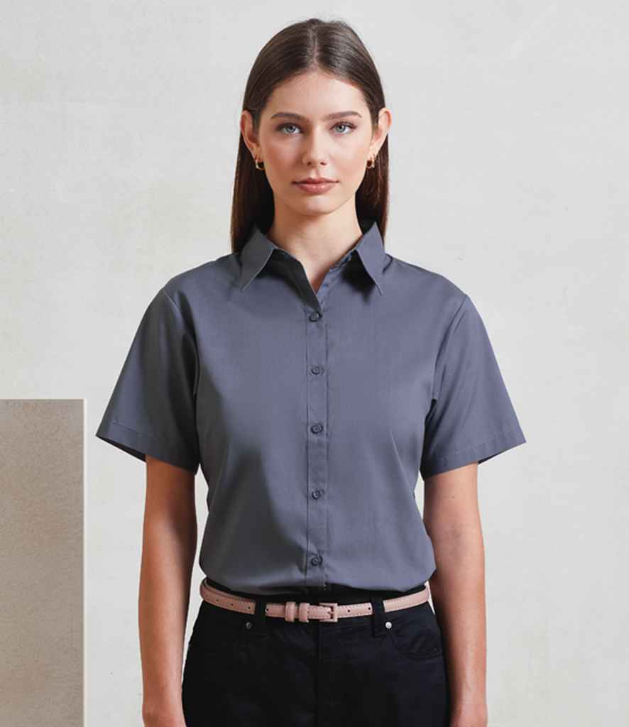 Premier Ladies Short Sleeve Poplin Blouse | Steel.