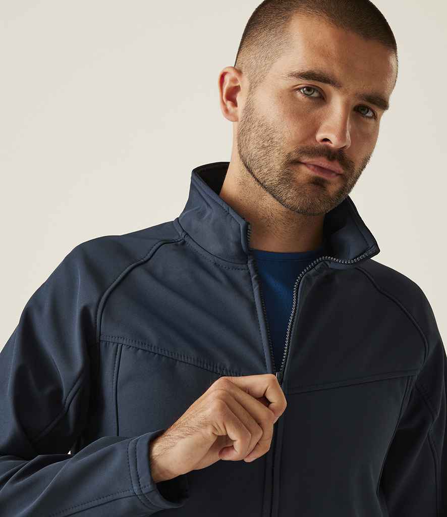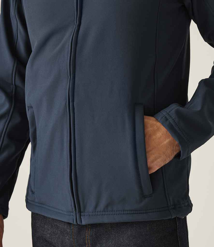 • Woven soft shell fabric has a 96% polyester/4% elastane outer.