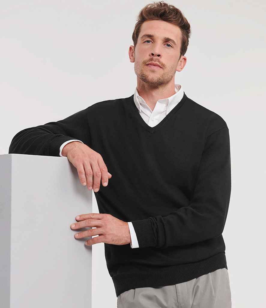 Russell Collection Cotton Acrylic V Neck Sweater | Black.