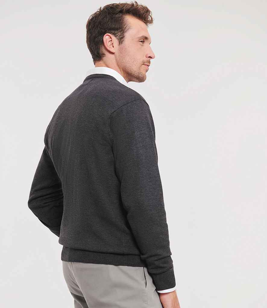 Russell Collection Cotton Acrylic V Neck Sweater | Charcoal Marl.