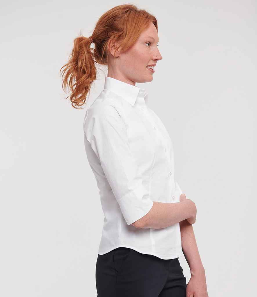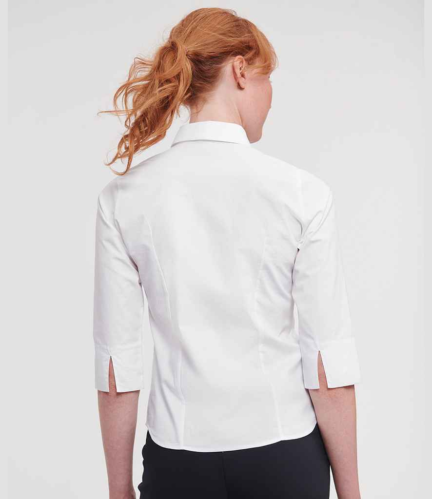 Russell Collection Ladies 3/4 Sleeve Easy Care Fitted Shirt | White.