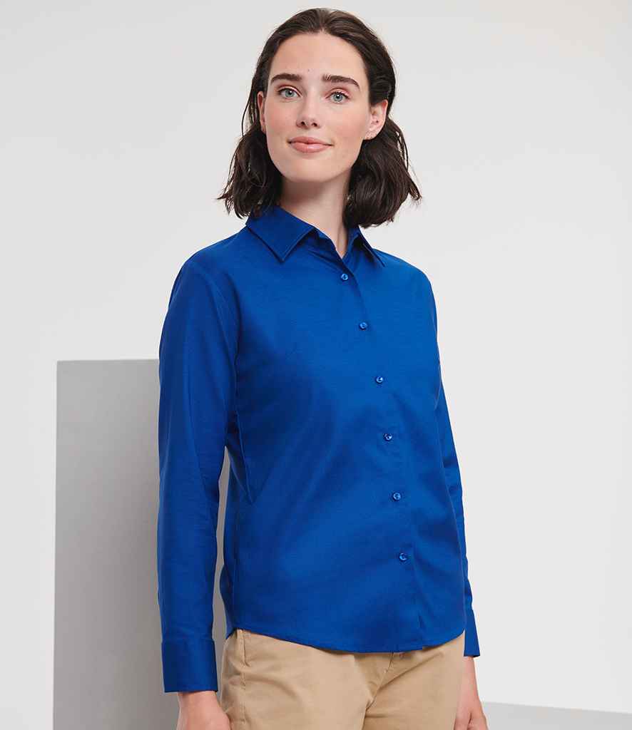 Russell Collection Ladies Long Sleeve Easy Care Oxford Shirt | Bright Royal.