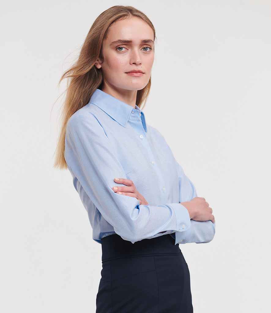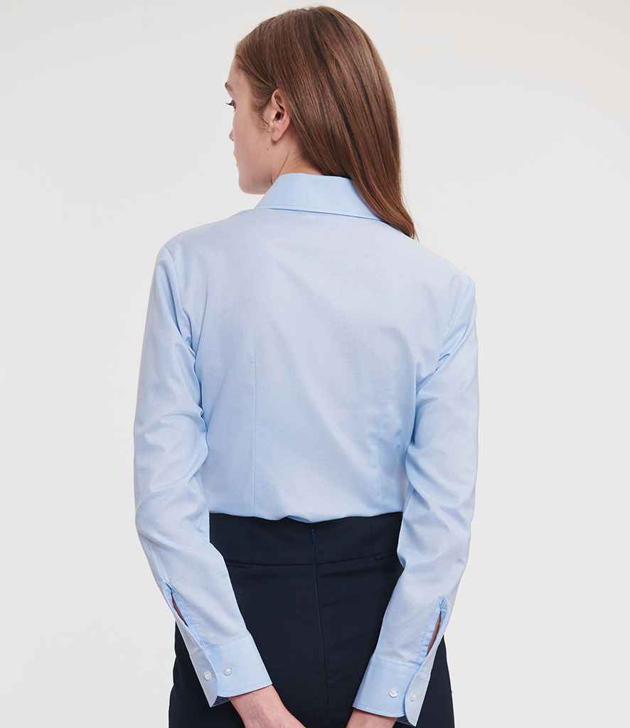 Russell Collection Ladies Long Sleeve Easy Care Oxford Shirt | Oxford Blue.