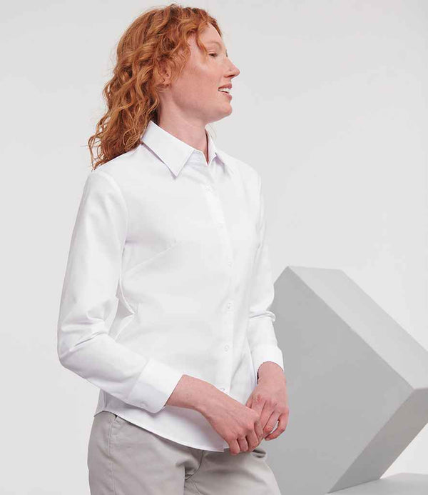 Russell Collection Ladies Long Sleeve Easy Care Oxford Shirt | White.
