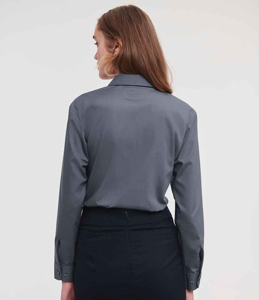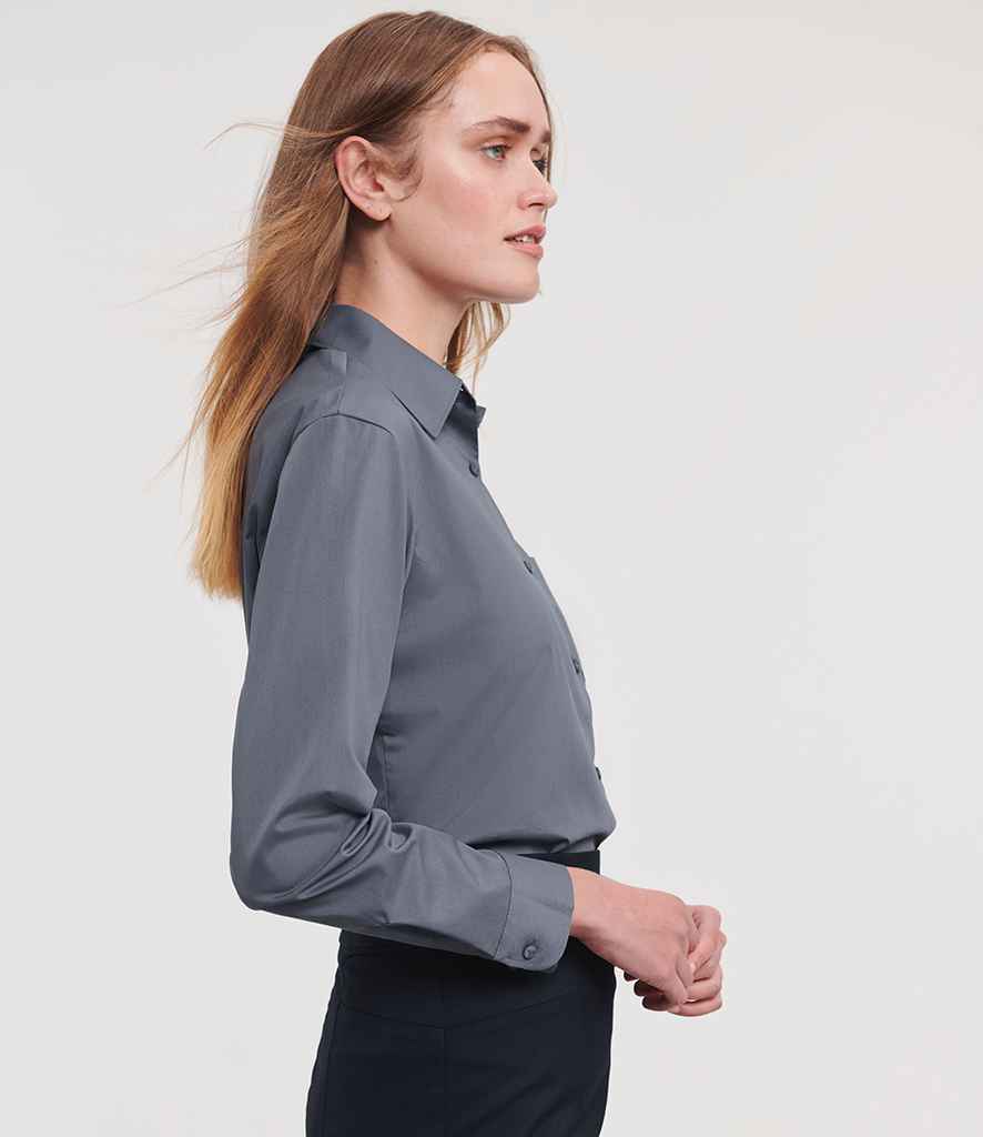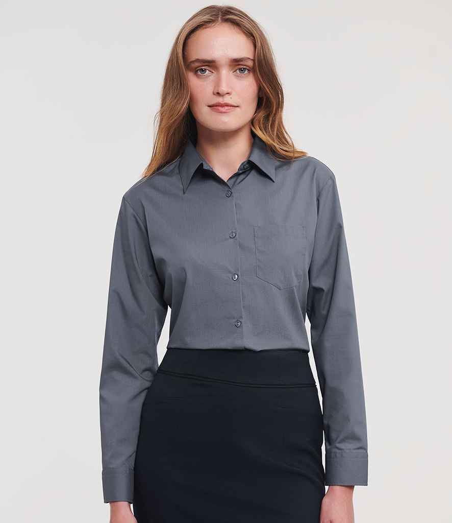 Russell Collection Ladies Long Sleeve Easy Care Poplin Shirt | Convoy Grey.