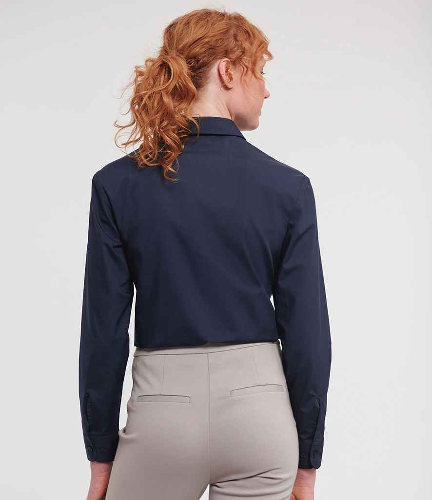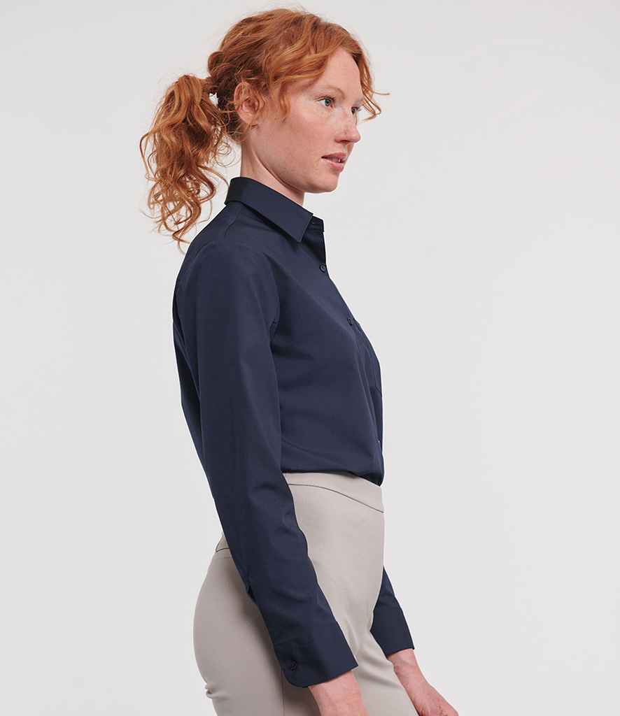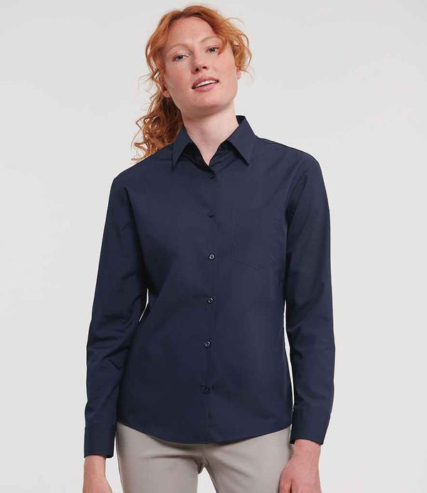 Russell Collection Ladies Long Sleeve Easy Care Poplin Shirt | French Navy.