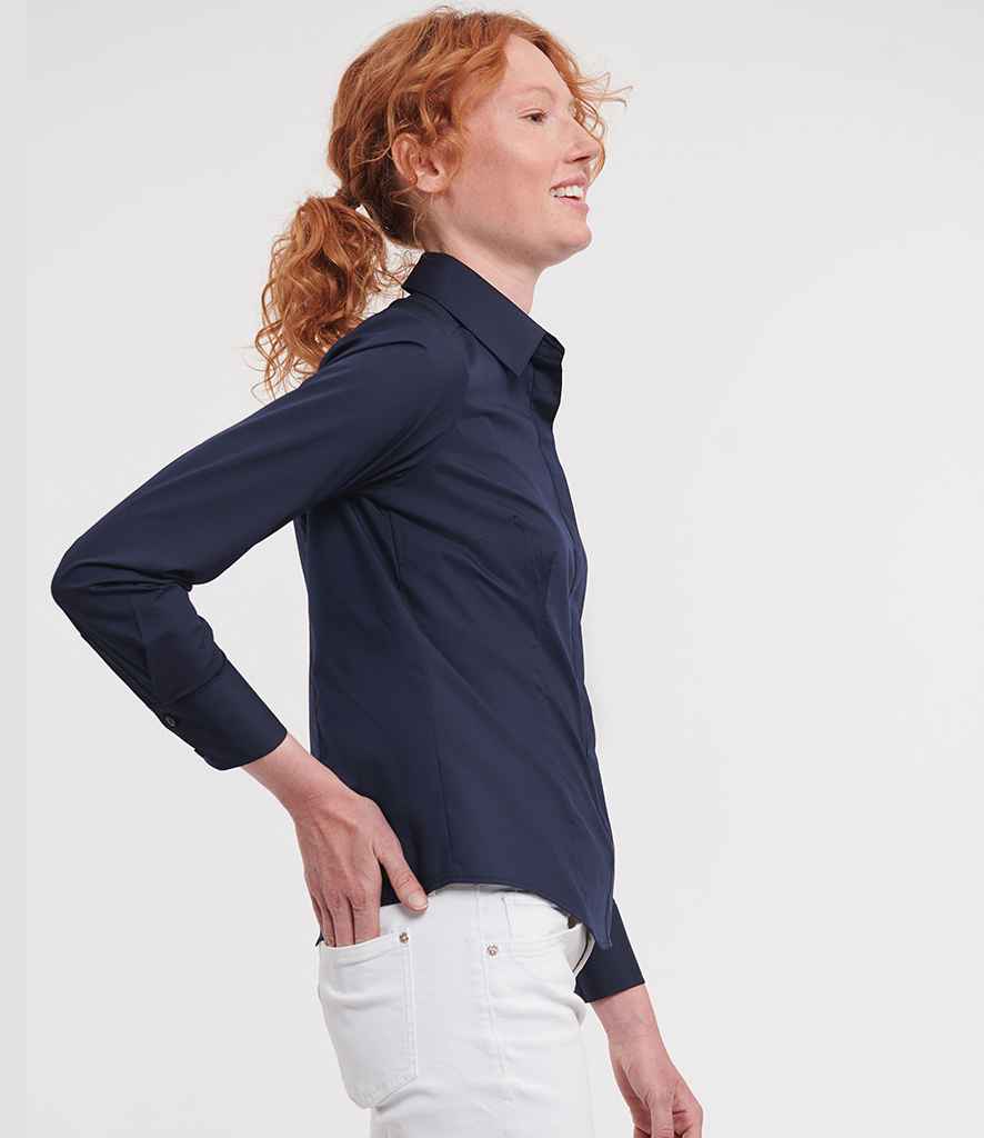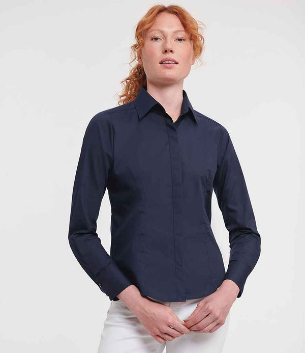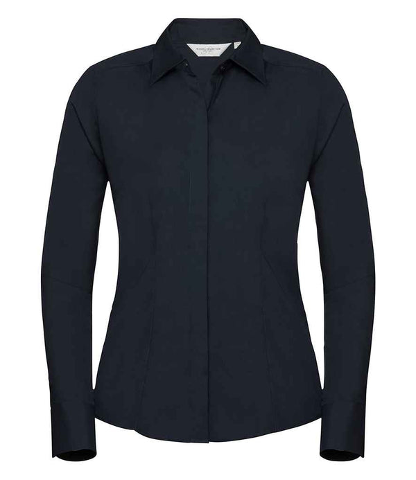 Russell Collection Ladies Long Sleeve Fitted Poplin Shirt | French Navy.