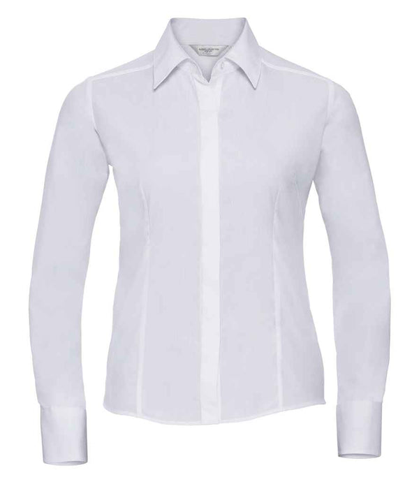 Russell Collection Ladies Long Sleeve Fitted Poplin Shirt | White.