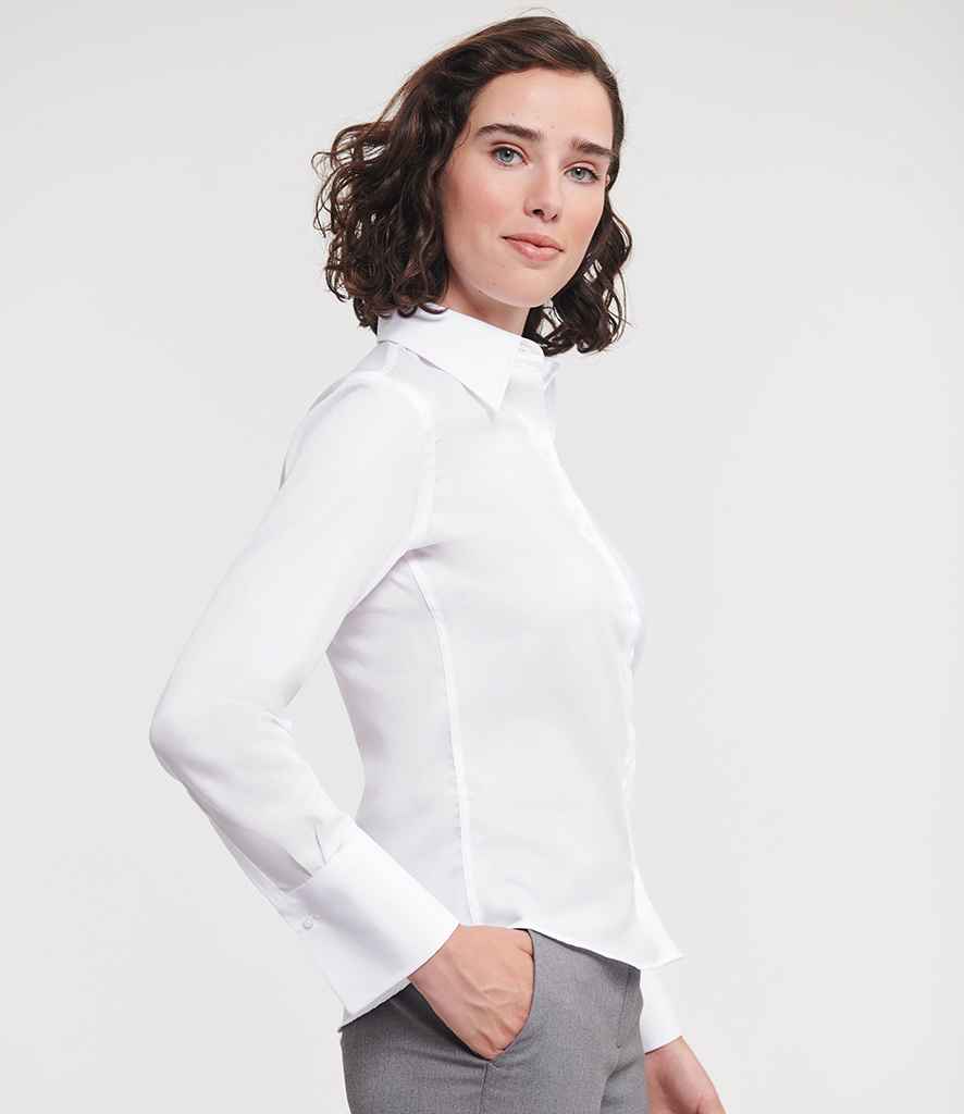 Russell Collection Ladies Long Sleeve Ultimate Non-Iron Shirt | White.