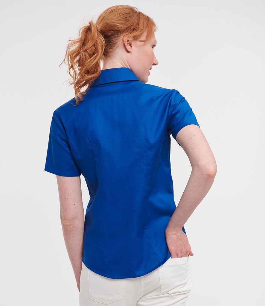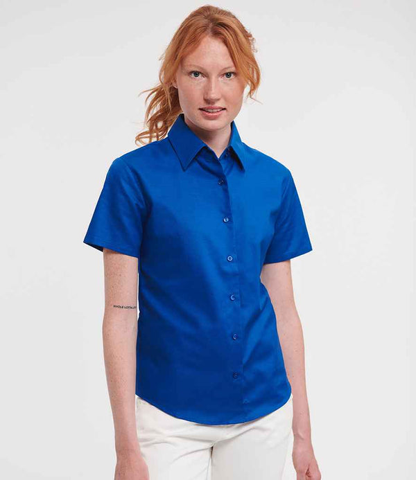 Russell Collection Ladies Short Sleeve Easy Care Oxford Shirt | Bright Royal.