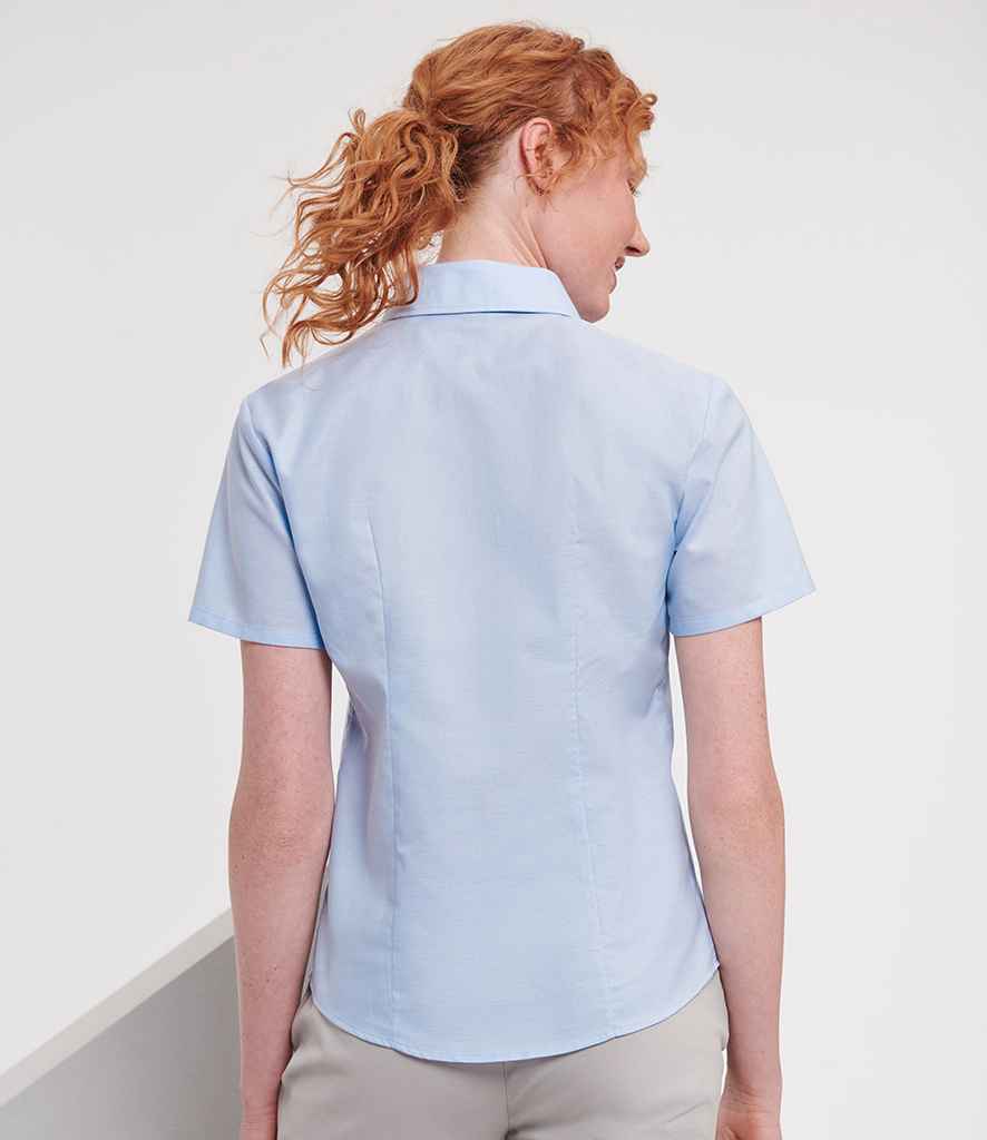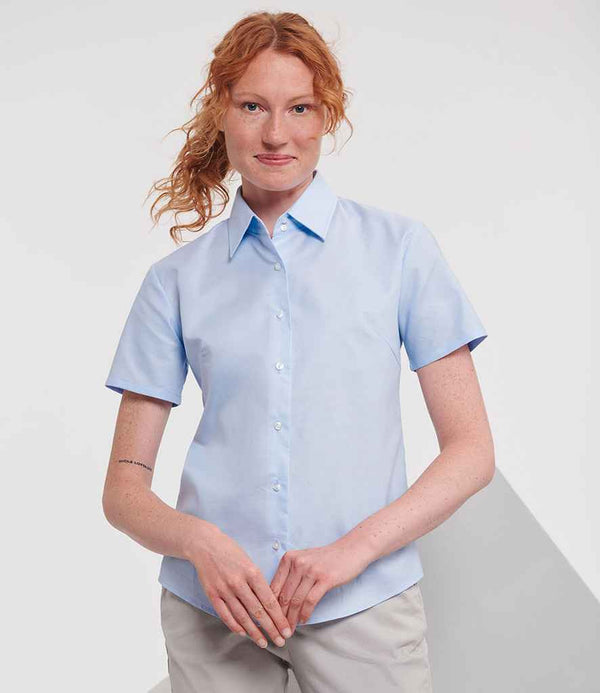 Russell Collection Ladies Short Sleeve Easy Care Oxford Shirt | Oxford Blue.