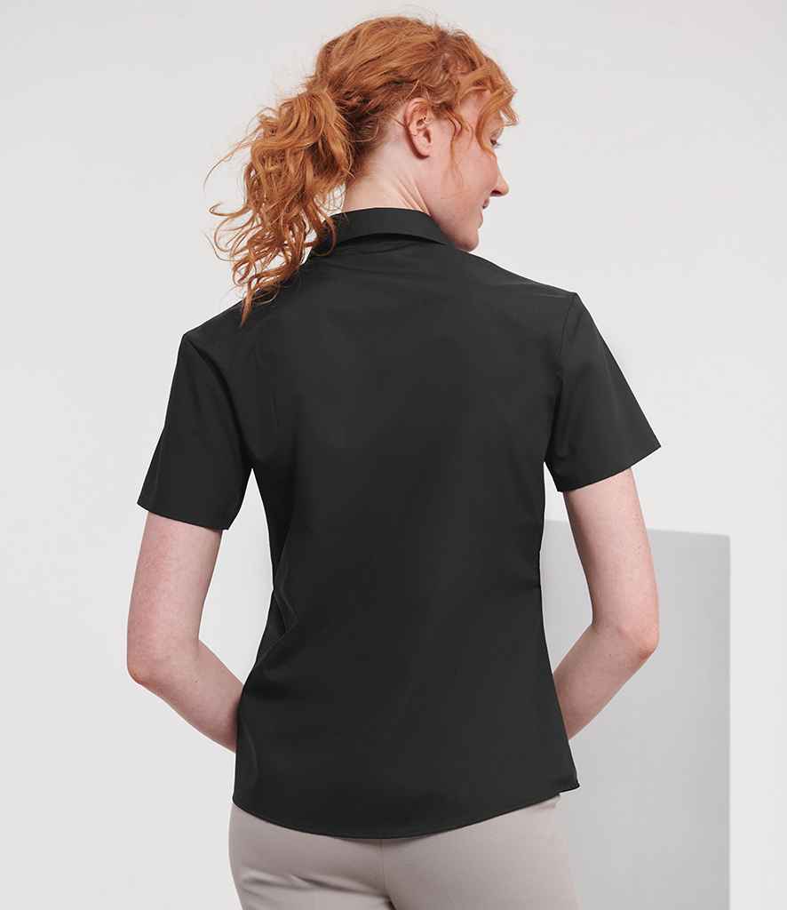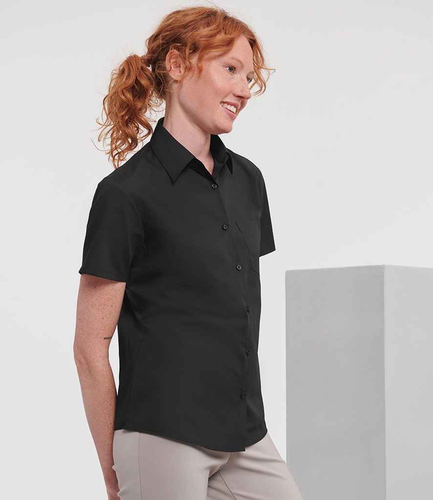 Russell Collection Ladies Short Sleeve Easy Care Poplin Shirt | Black.
