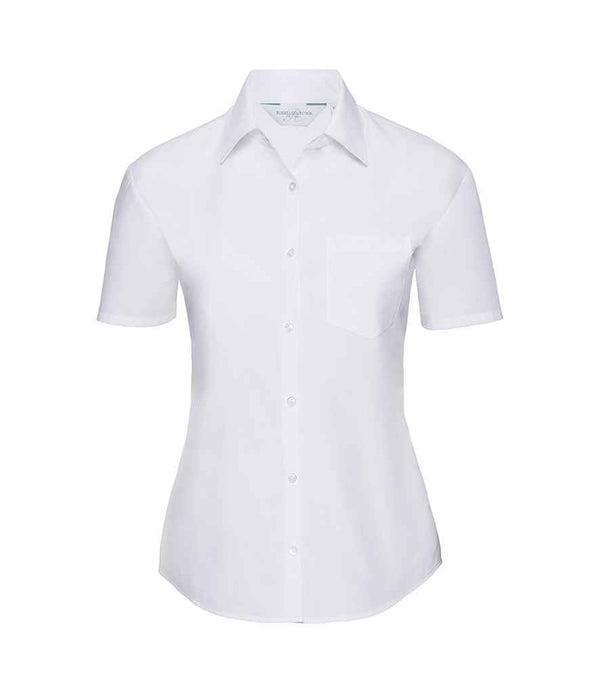 Russell Collection Ladies Short Sleeve Easy Care Poplin Shirt | White.