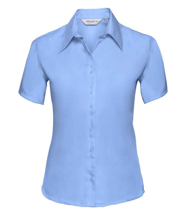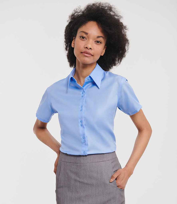 Russell Collection Ladies Short Sleeve Ultimate Non-Iron Shirt | Bright Sky.