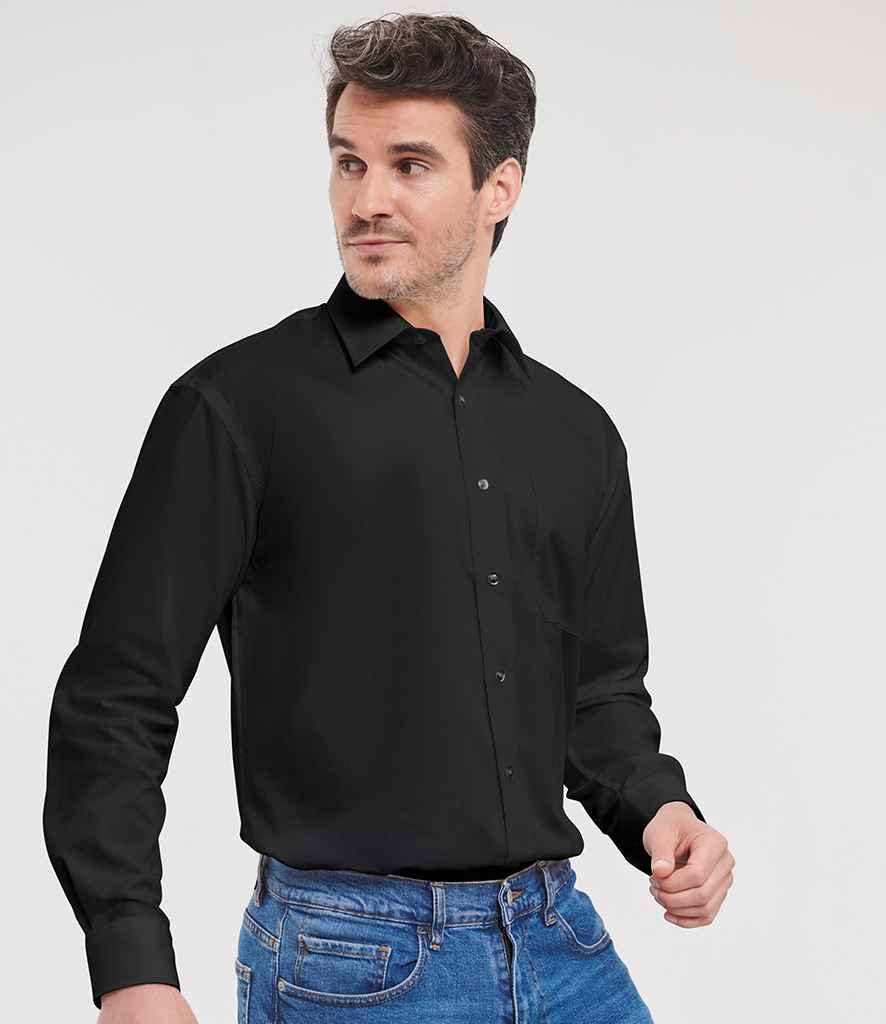 Russell Collection Long Sleeve Easy Care Cotton Poplin Shirt | Black.