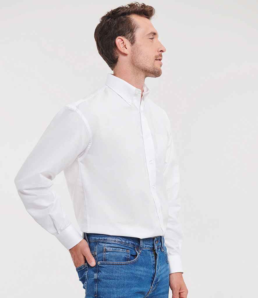 Russell Collection Long Sleeve Easy Care Oxford Shirt | White.