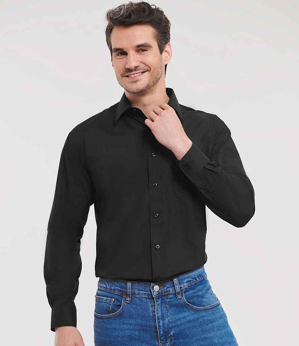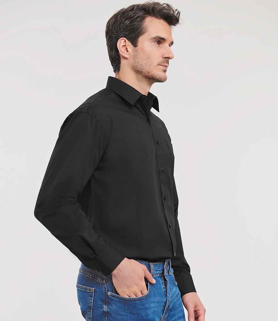 Russell Collection Long Sleeve Easy Care Poplin Shirt | Black.