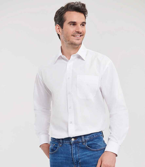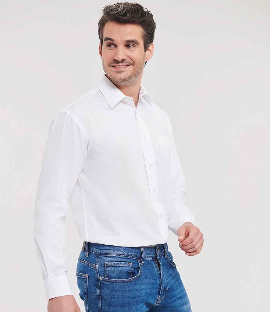Russell Collection Long Sleeve Easy Care Poplin Shirt | White.