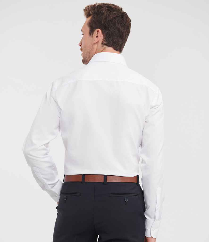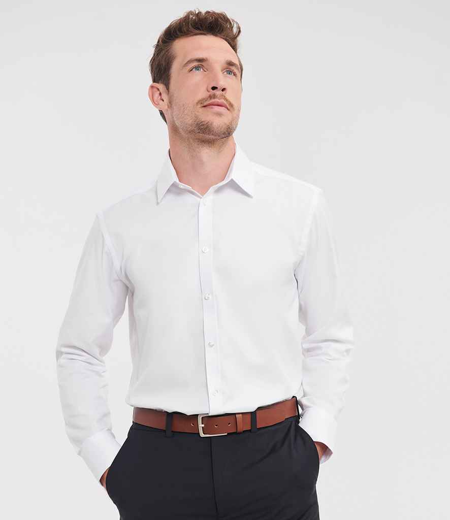 Russell Collection Long Sleeve Herringbone Shirt | White.