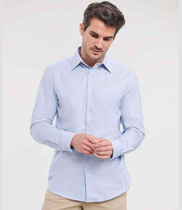 Russell Collection Long Sleeve Tailored Oxford Shirt | Oxford Blue.