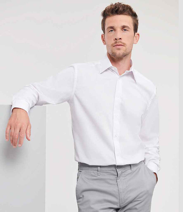 Russell Collection Long Sleeve Tailored Oxford Shirt | White.