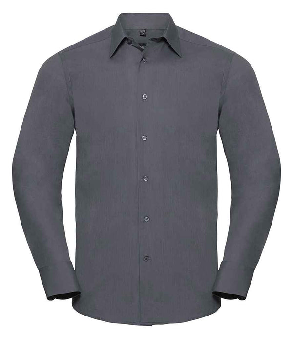 Russell Collection Long Sleeve Tailored Poplin Shirt | Convoy Grey.