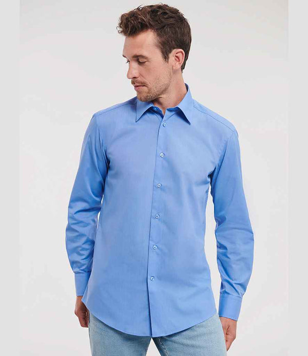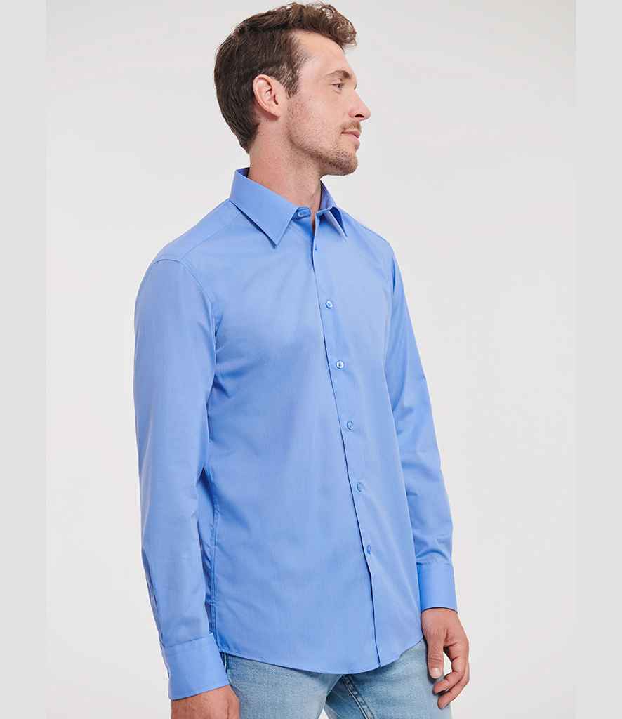 Russell Collection Long Sleeve Tailored Poplin Shirt | Corporate Blue.