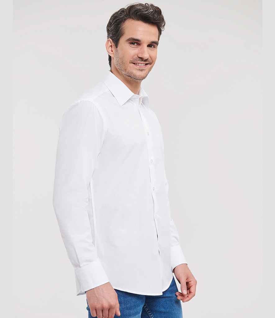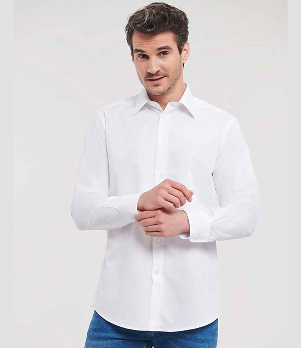 Russell Collection Long Sleeve Tailored Poplin Shirt | White.