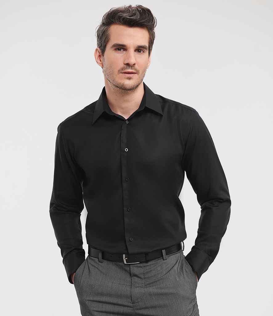 Russell Collection Long Sleeve Tailored Ultimate Non-Iron Shirt | Black.