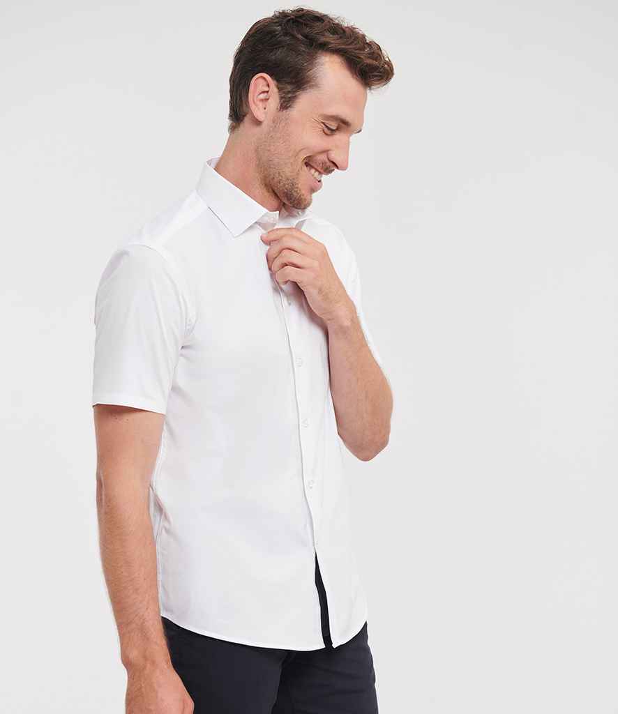 Russell Collection Short Sleeve Easy Care Fitted Shirt | White.