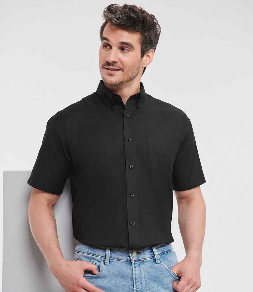 Russell Collection Short Sleeve Easy Care Oxford Shirt | Black.