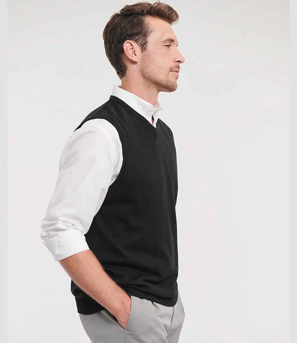 Russell Collection Sleeveless Cotton Acrylic V Neck Sweater | Black.