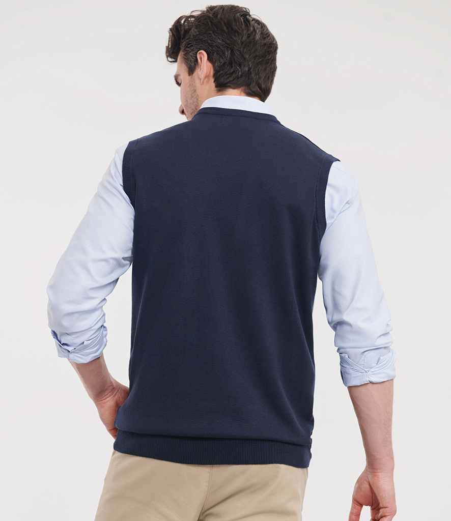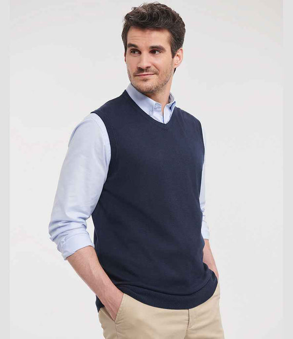Russell Collection Sleeveless Cotton Acrylic V Neck Sweater | French Navy.