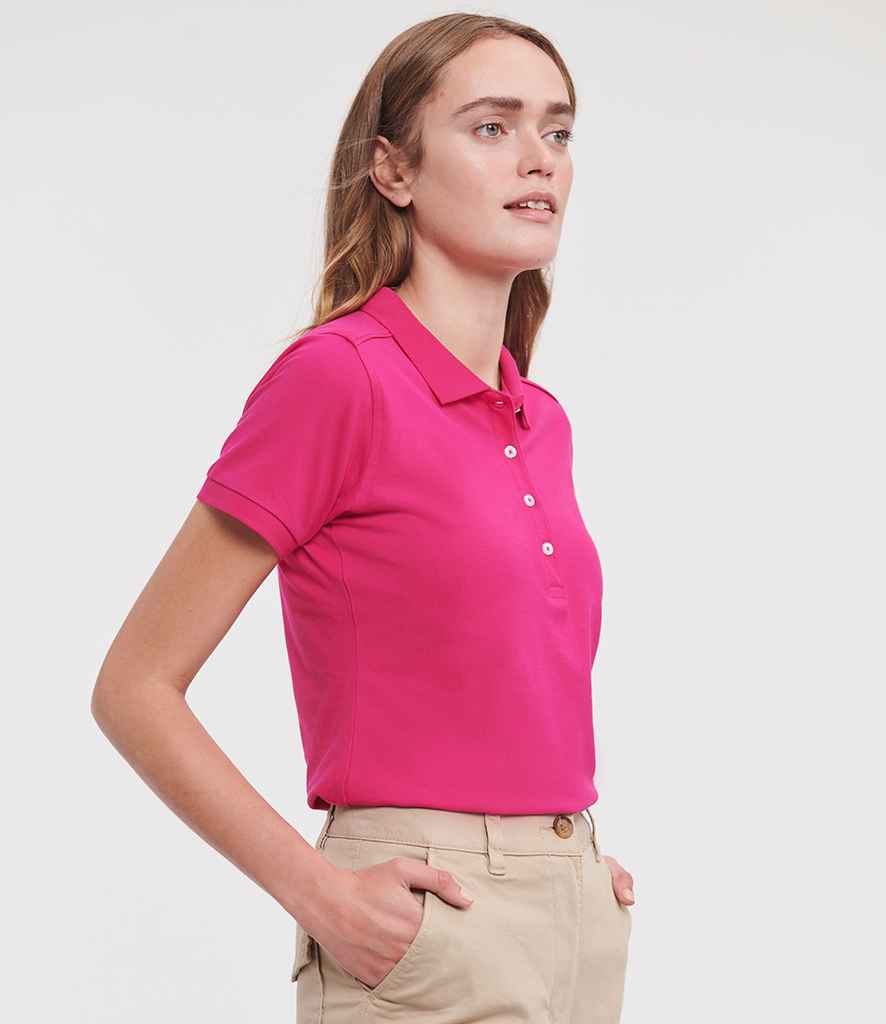Russell Ladies Stretch Piqué Polo Shirt | Fuchsia.