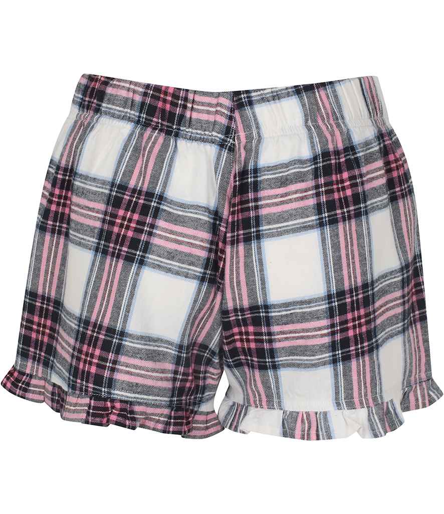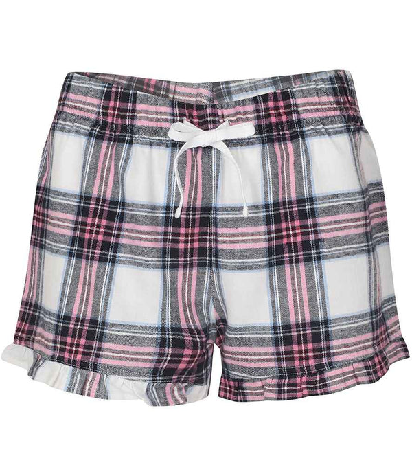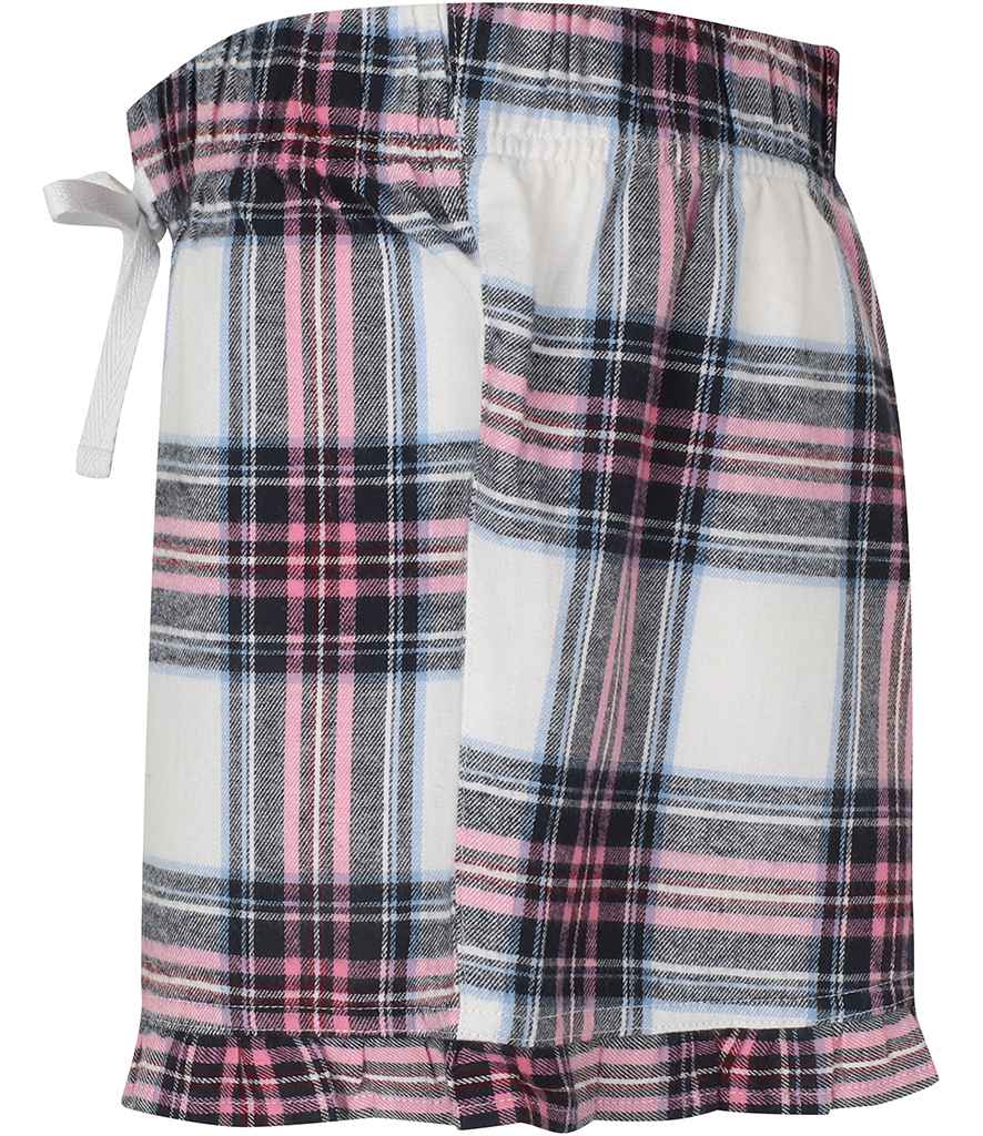 SF Clothing Ladies Tartan Frill Lounge Shorts | White/Pink.