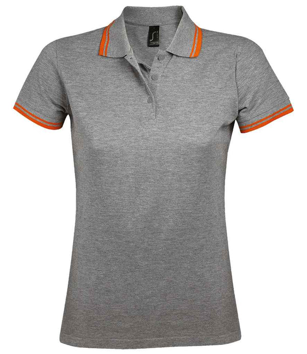SOL'S Ladies Pasadena Tipped Cotton Piqué Polo Shirt | Grey Marl/Orange.