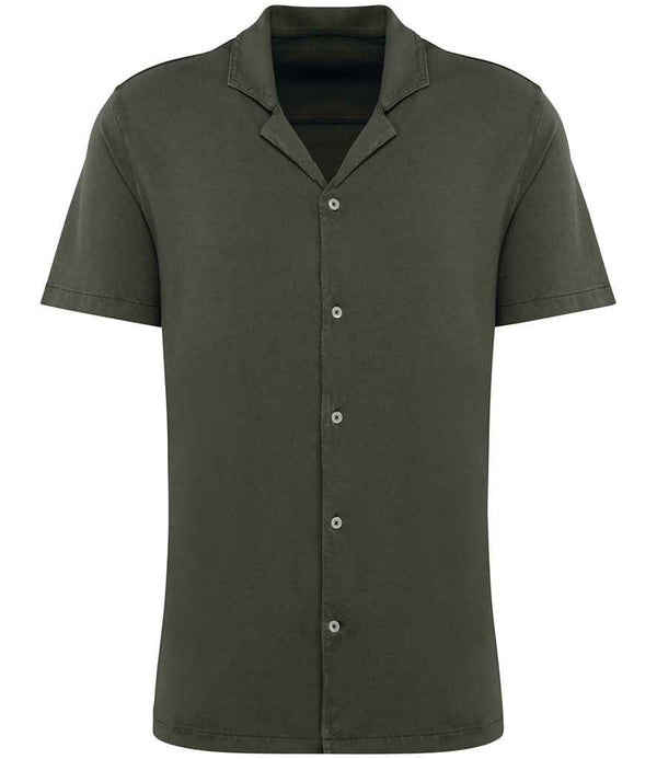 Spasso Jersey Short Sleeve Bowling Collar Shirt | Washed Organic Khaki.