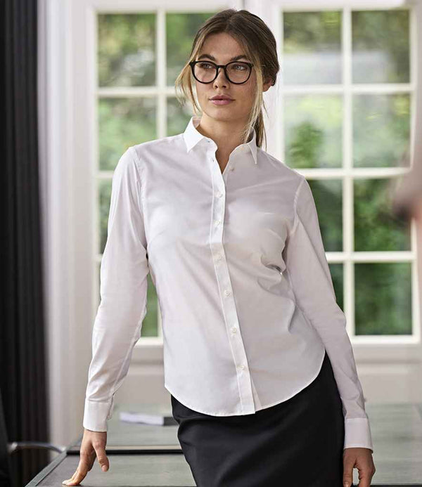 Tee Jays Ladies Stretch Luxury Long Sleeve Poplin Shirt | White.